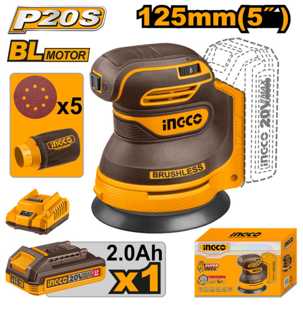 جهاز صنفرة دائرية شحن 20 فولت (125 ملم) مع بطارية وشاحن
