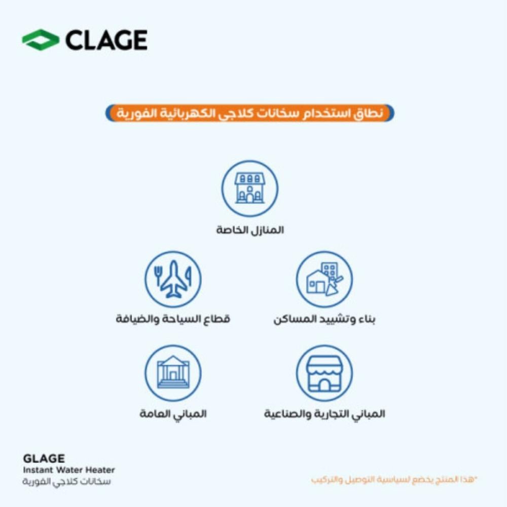 أما على النطاق الخارجي فقد تم تجربة سخانات كلاجي الكهربائية الفورية في جميع المباني على اختلاف أشكالها وأغراضها. فيتم استخدام سخانات كلاجي الذكية في: