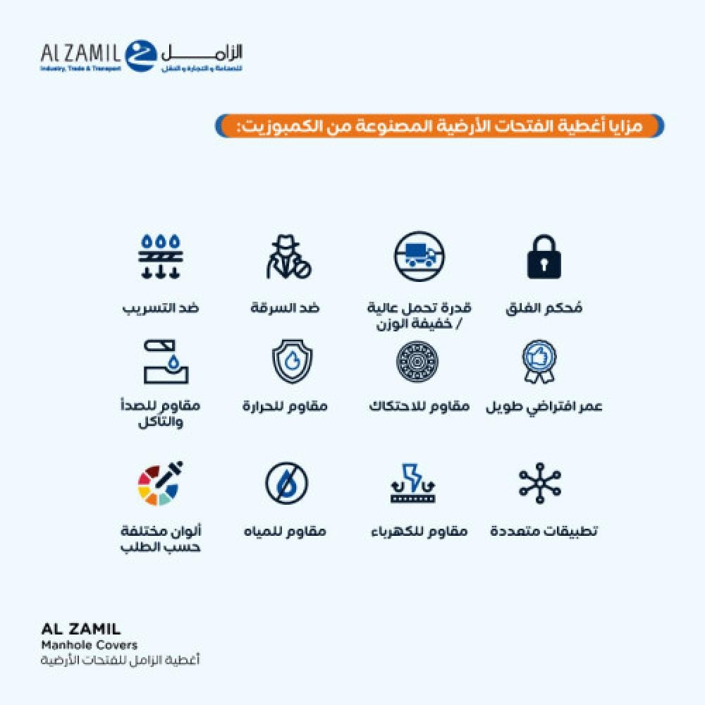 أغطية الفتحات الأرضية المصنعة من الكمبوزايت شديدة المقاومة للتآكل، فهي تتميز بقدرتها العالية على
