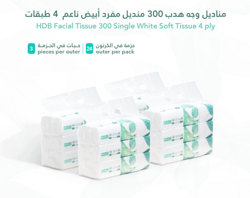 مواصفات مناديل وجه هدب 300 منديل (72 حبة في الكرتون):