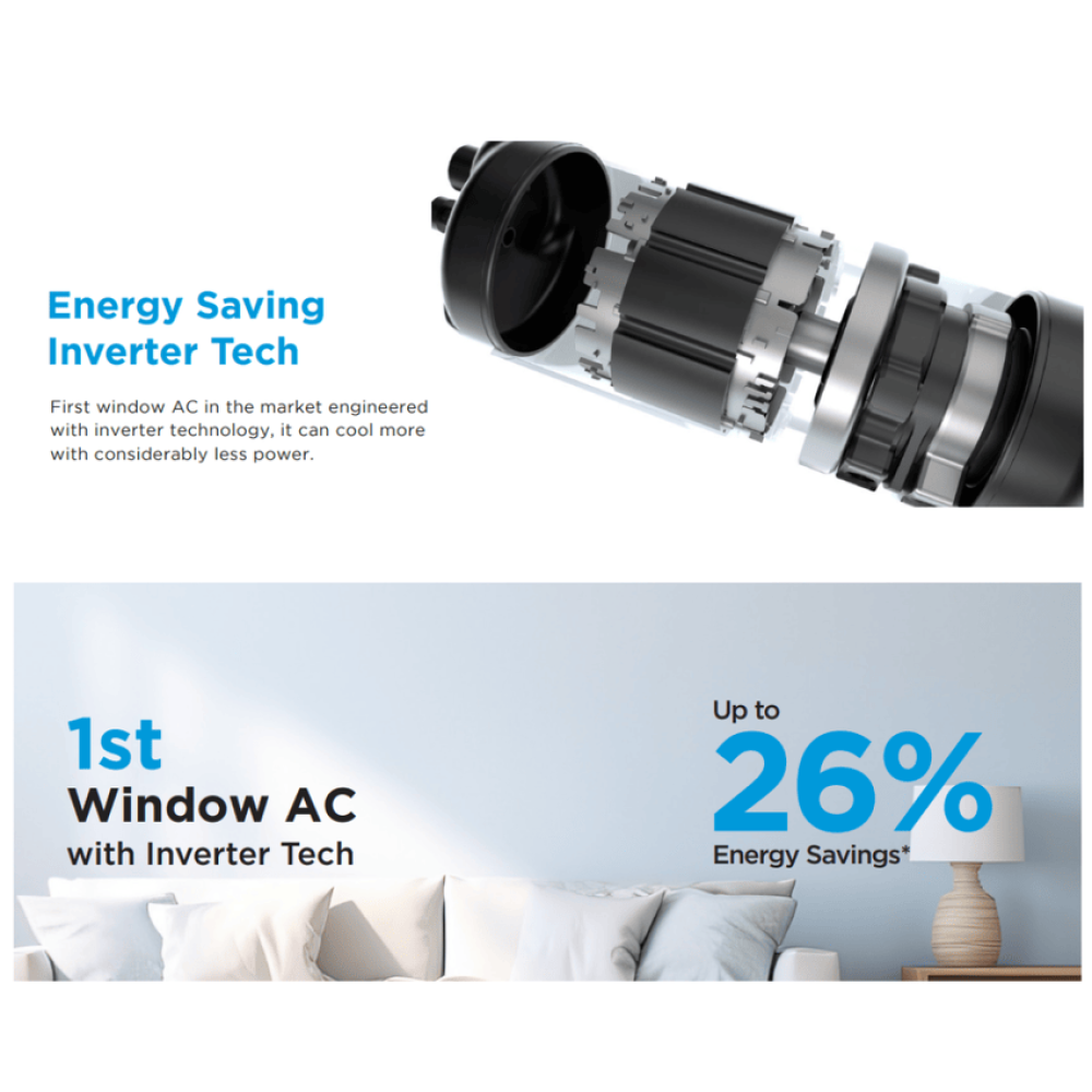 - انفرتر موفر للطاقة: استمتع بمكيف شباك سبليت بتوفير فائق للطاقة بنسبة 26% لتجربة مريحة