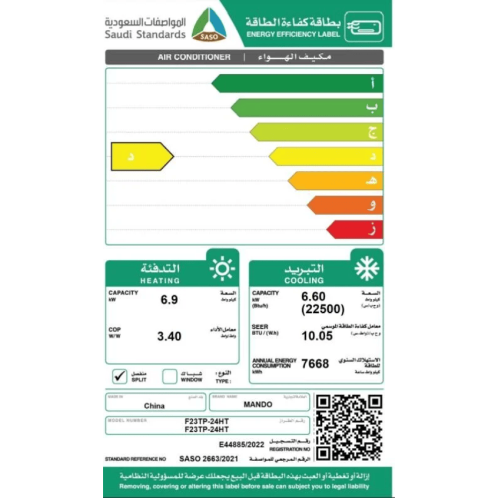 مواصفات مكيف سبليت ماندو بلس 22000 وحدة – حار / بارد :