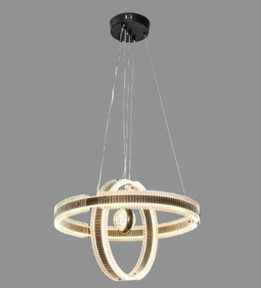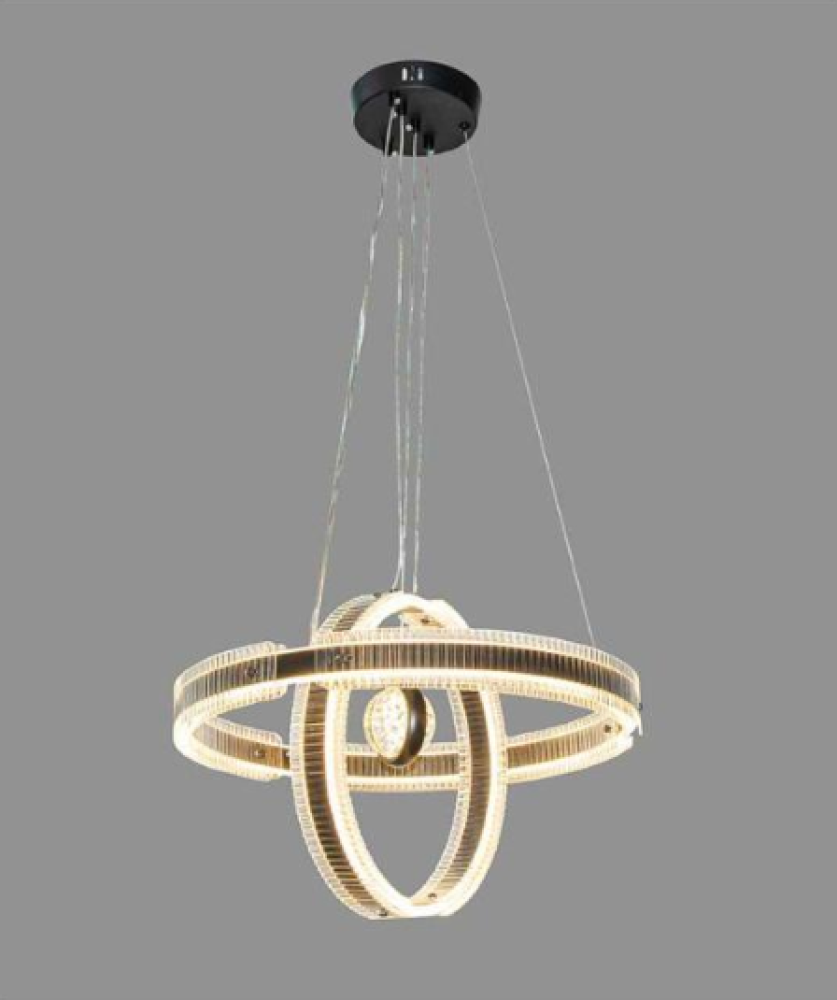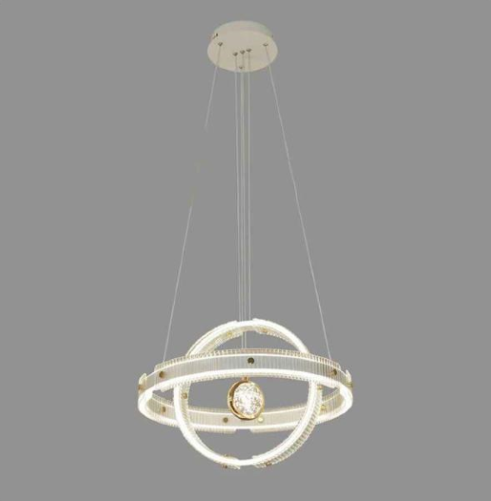 Product Description:A modern LED pendant chandelier with an elegant circular design inspired by planetary orbits. Featuring glowing LED rings and a crystal sphere centerpiece, this chandelier combines luxury with contemporary style, making it a stunning focal point for living rooms, dining areas, or reception halls.