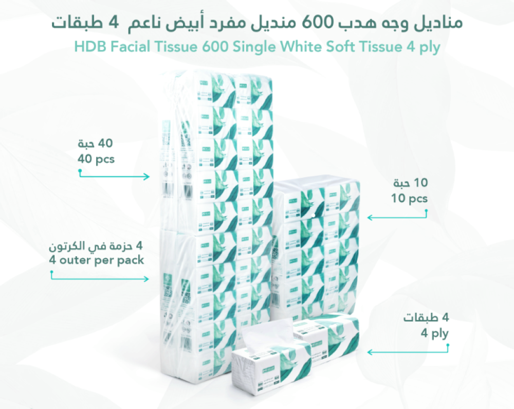 Are you looking for premium-quality facial tissues free from harmful chemicals? Sawab Store in Saudi Arabia offers you the best Hedb Facial Tissues, designed to provide a safe and comfortable experience while ensuring the highest standards of quality. No need to search further! Choose now Hedb Facial Tissues 600 Sheets (40 packs per carton) and enjoy superior softness with long-lasting strength.