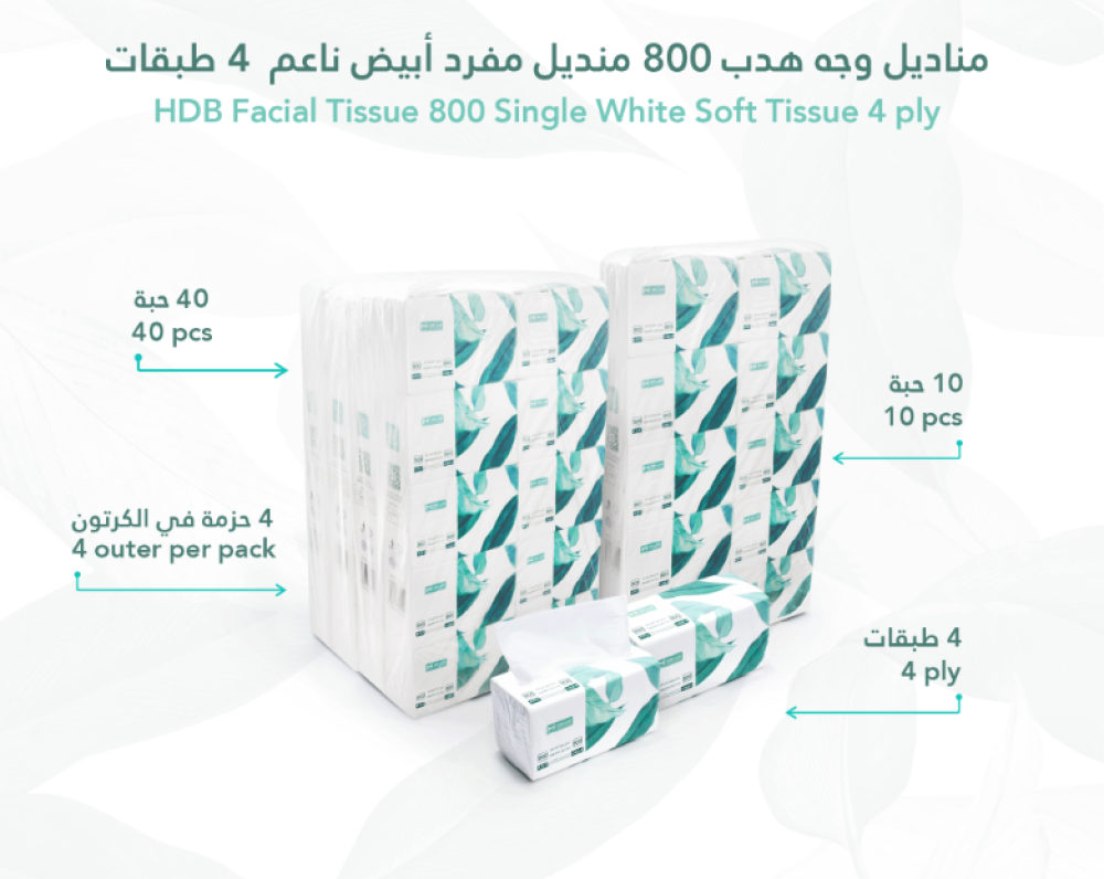 Product Specifications – Hedb Facial Tissues (800 Sheets / 4 Ply):