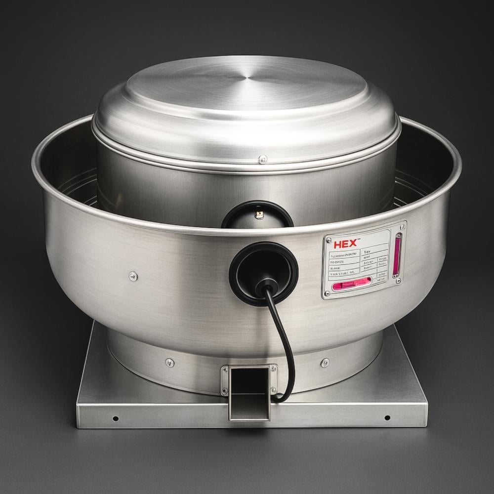 HEX RAPTOR 1300 Roof Exhaust Fan The HEX RAPTOR 1300 is an advanced, high-capacity exhaust fan specifically designed for kitchens and restaurants to solve the most complex ventilation challenges. It is engineered to operate continuously for extended hours in environments with heavy smoke, grease, and heat emissions.
