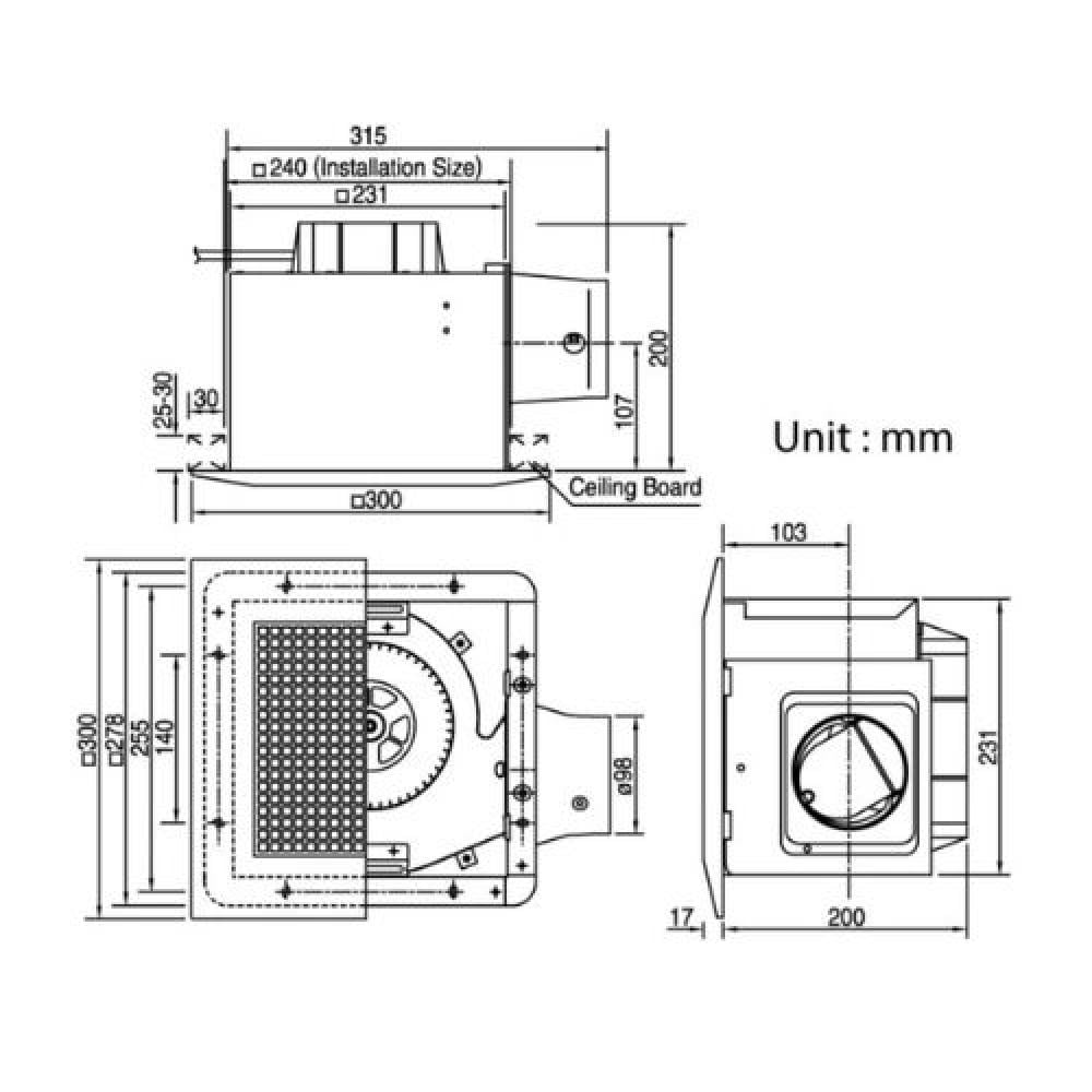 - Suitable for ceiling installation: The fan is specially designed for ceiling installation.