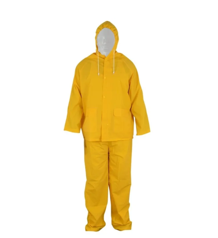 PVC rain suit is perfect for regular rain, windproof in winter, breathable fabric with stylish front buckle and adjustable hood to keep the weather out.